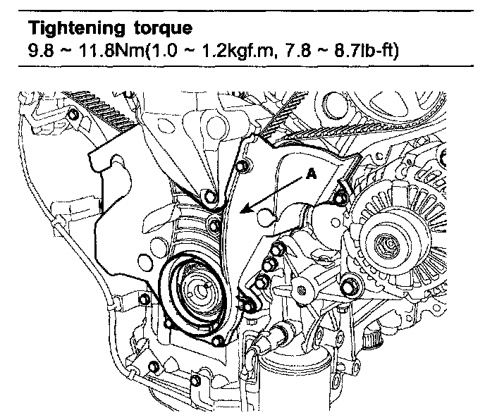 9. Remove the timing belt lower cover(A).
