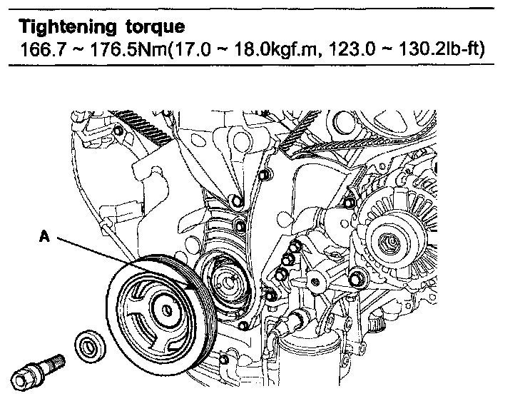 8. Remove the crankshaft damper pulley(A).