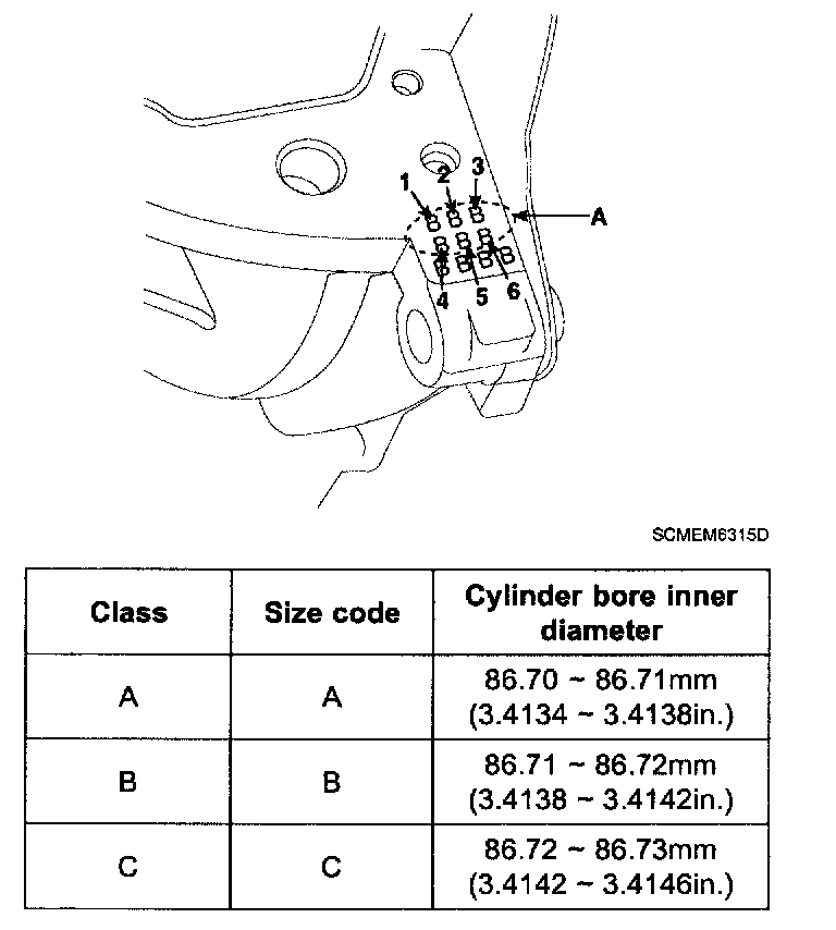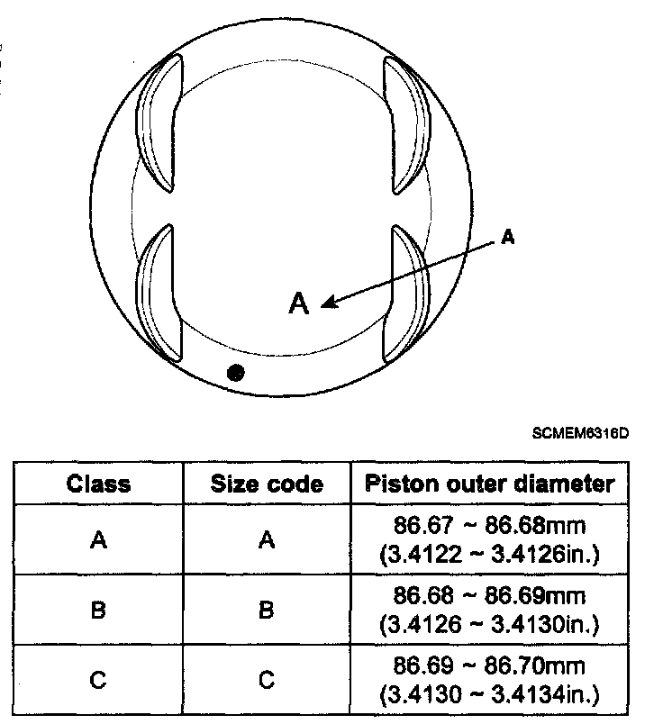 Piston standard diameter 86.67-86.70 (3.4122-3.4134in.)