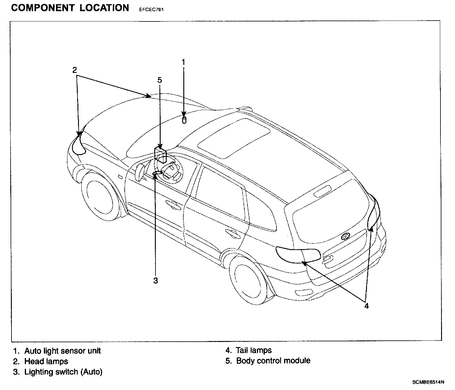 Auto Lighting Control System - Component Location: