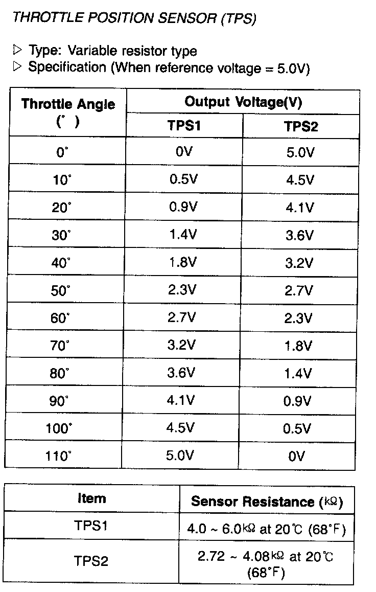 Throttle Position Sensor (TPS) - Specification: