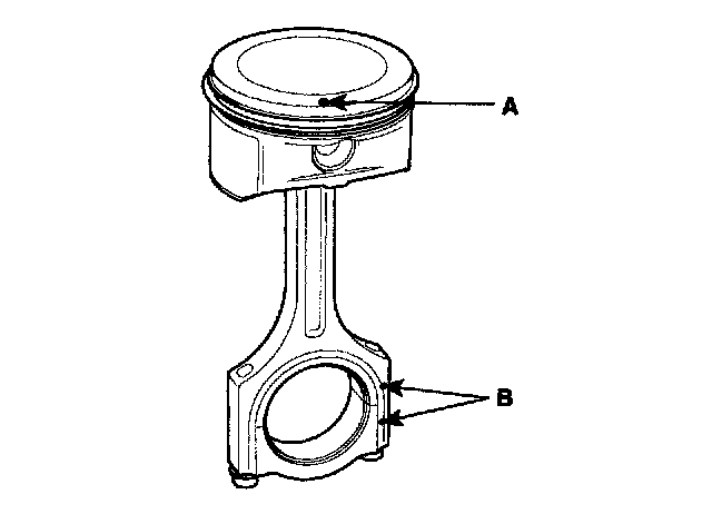 2) The piston front mark(A) and the connecting rod front mark must face the timing belt side of the engine.