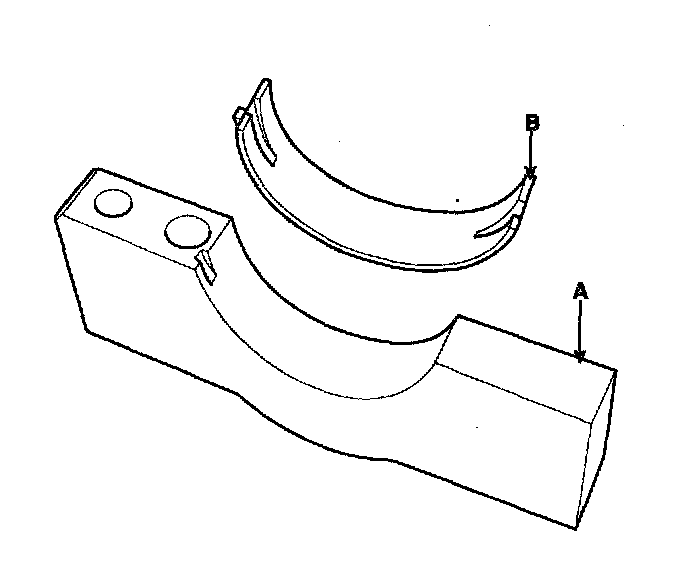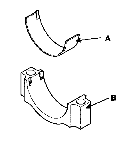 2) Install the bearings(A) in the connecting rod and connecting rod cap(B).