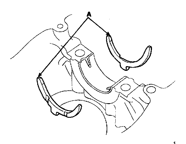 1) Aligning the bearing claw with the claw groove of the cylinder block, push in the 4 upper bearings(A).