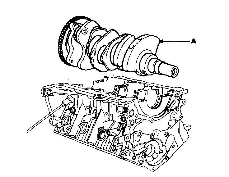 7. Place crankshaft(A) on the cylinder block.