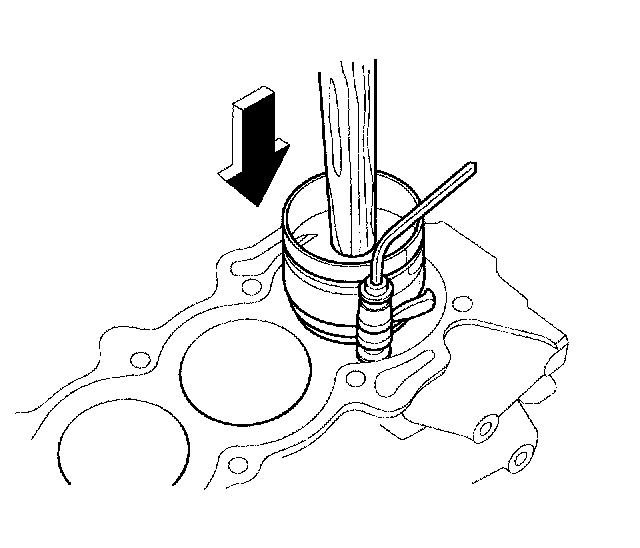 ^ Maintain downward force on the ring compressor to prevent the rings from expanding before entering the cylinder bore.