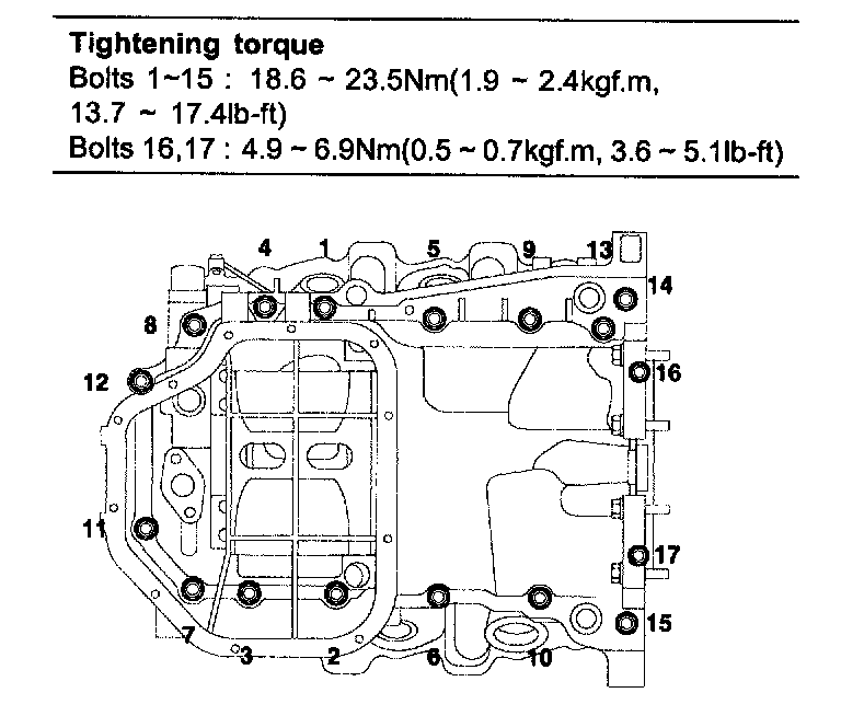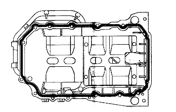 2) Before assembling the oil pan, the liquid sealant TB1217H should be applied on lower oil pan. The part must be assembled within 5 minutes after the sealant was applied.