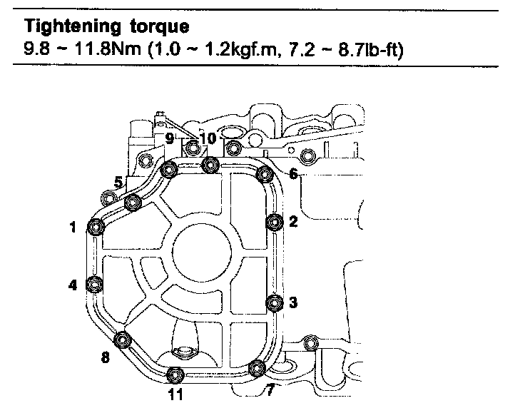 M10: 29.4Nm (3.0 kgf.m, 21.7 lb-ft) + 90 degrees