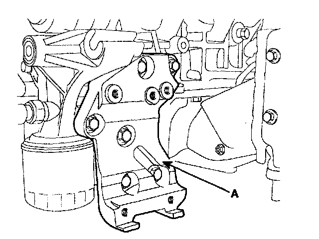 18. Install the air conditioning compressor bracket (A).