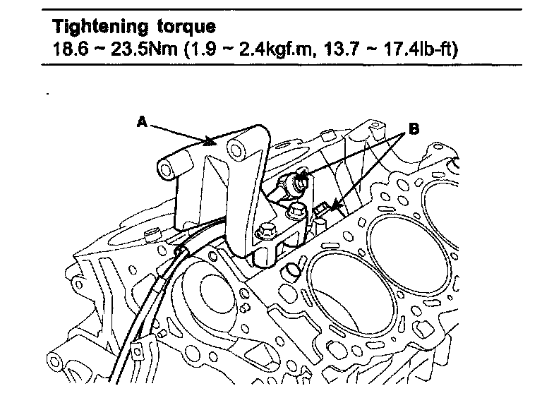 19. Install the power steering pump bracket (A) and the knock sensor(B).