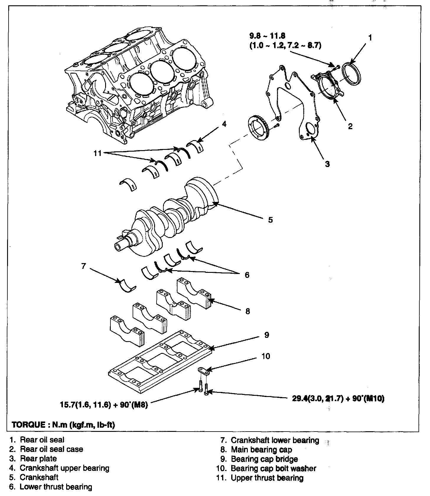 12. Remove the crankshaft bearing cap and check oil clearance.