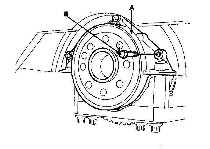 1. Remove the power steering pump bracket(A) and the knock sensor(B).