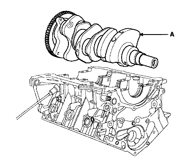 13. Lift the crankshaft(A) out of the block, being careful not to damage journals.