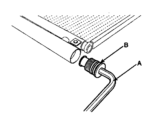 2. Remove the desiccant (A) from condenser using a long nose plier. Check for crumbled desiccant and clogged bottom cap filter.