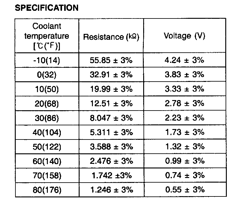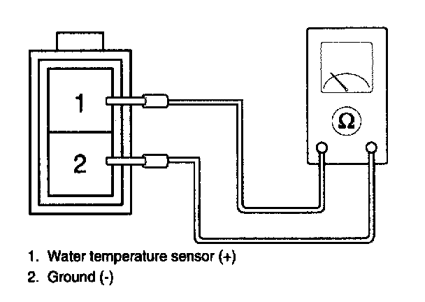 3. If the measured resistance is not specification, substitute with a known-good water temperature sensor and check for proper operation.