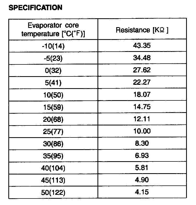 EVAPORATOR TEMPERATURE SENSORINSPECTION