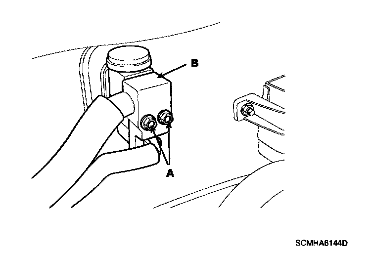 4. Remove the bolts (A) and the expansion valve (B) from the evaporator core.