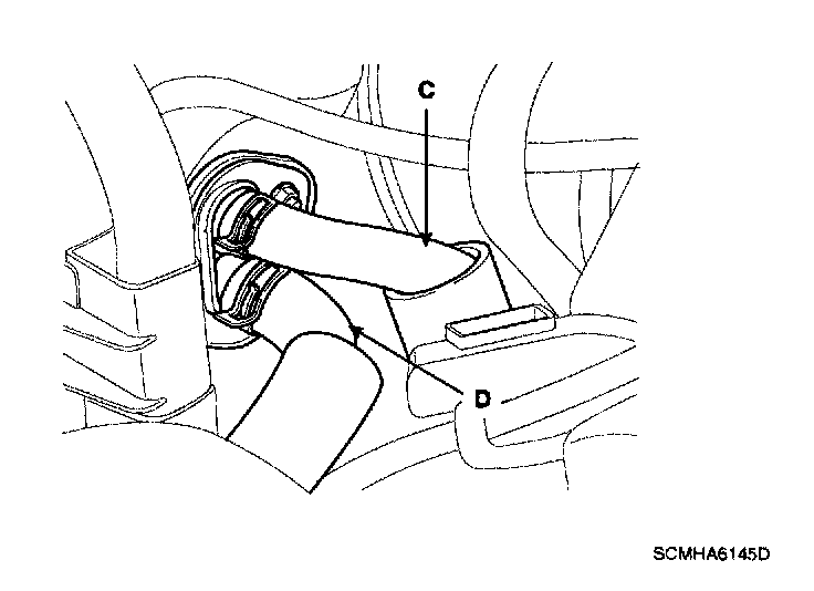 5. Disconnect the inlet (C) and outlet (D) heater hoses from the heater unit.