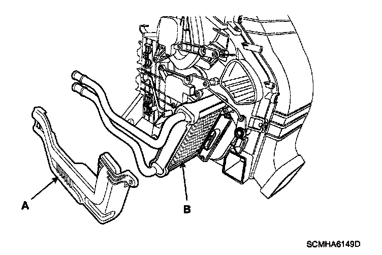 12. Remove the heater core (B) after remove the cover (A).