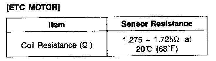 1. Disconnect ETC module connector and measure resistance between ETC module terminals 5 and 8.