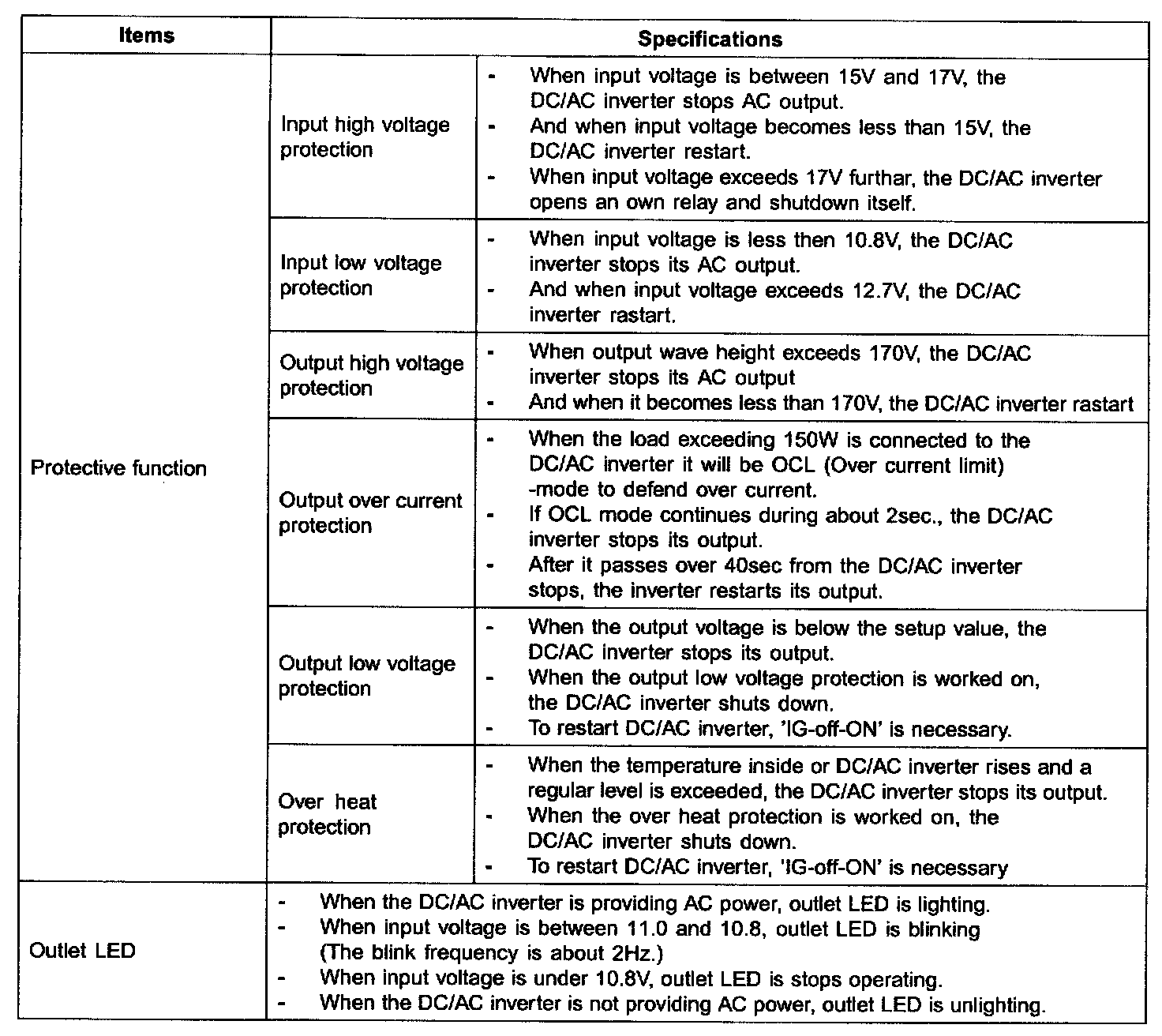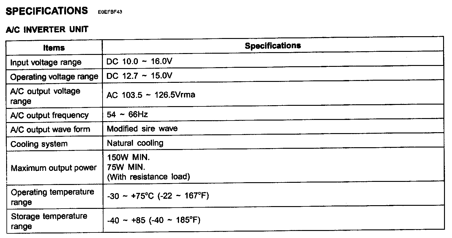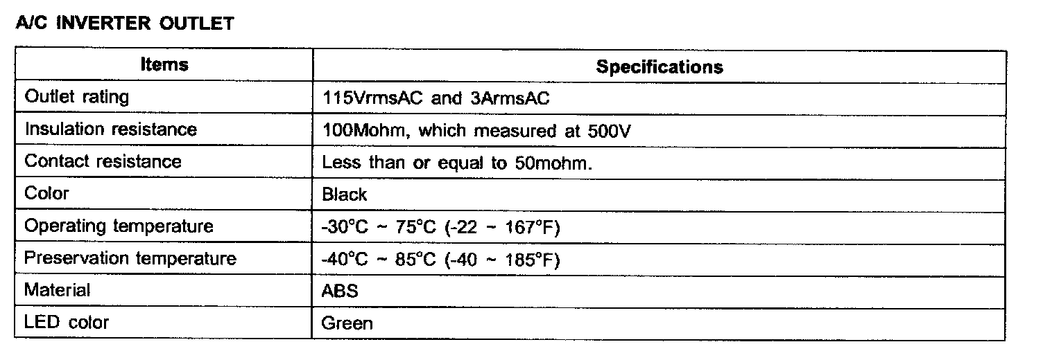 A/C Inverter Outlet - Specifications: