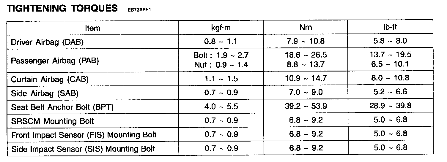 Tightening Torques: