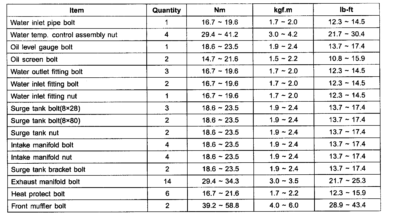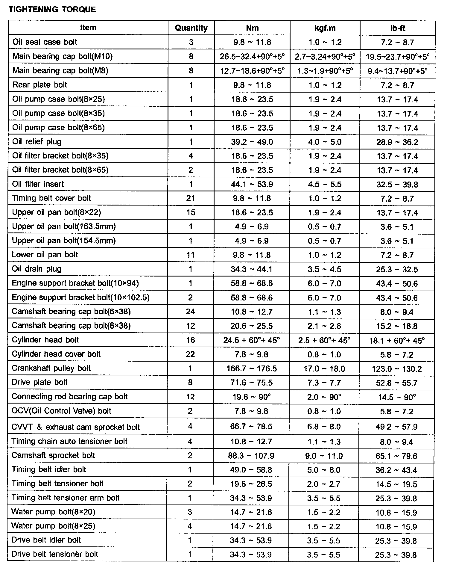 TIGHTENING TORQUE: