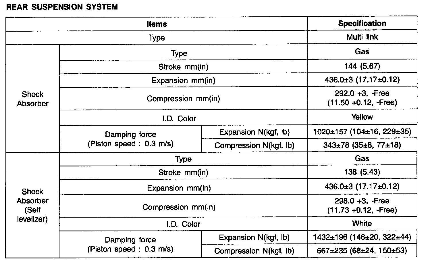 REAR SUSPENSION SYSTEM: