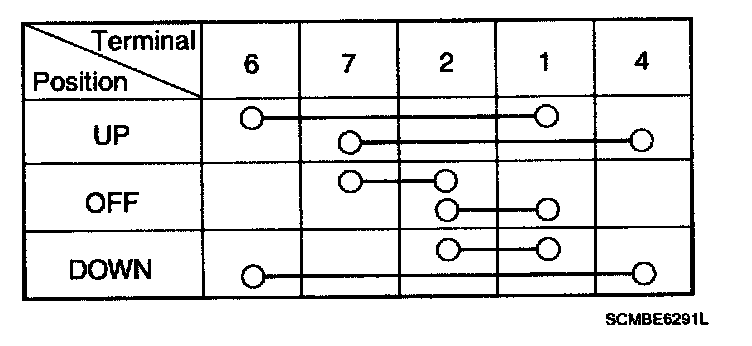 4. Check for continuity between the terminals in each switch position according to the table. If the continuity condition is not normal, replace the switch.