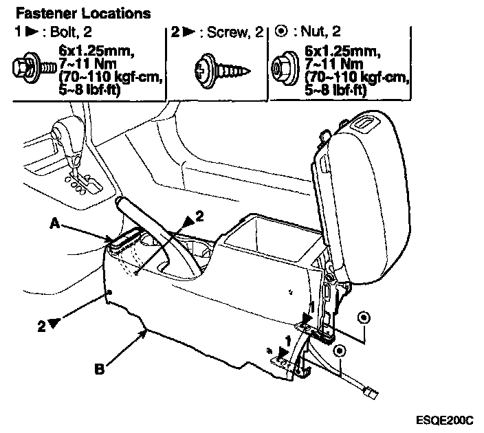 3. After disconnecting the seat warmer connector (A), remove the console assembly (B).