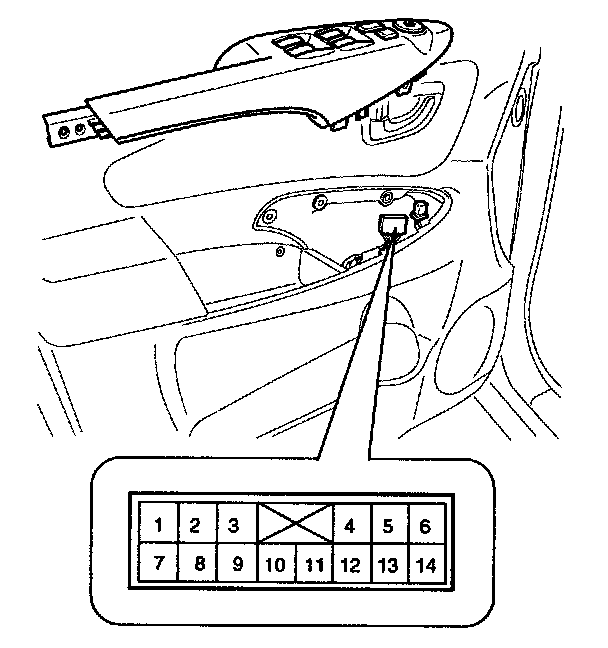 2. Disconnect the 14P connector from the door lock switch assembly.