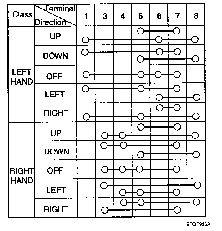 3. Check for continuity between the terminals in each switch position according to the table.