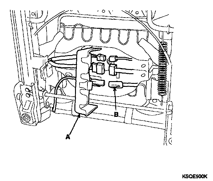 4. Disconnect the connector (B), and remove the seat assembly.