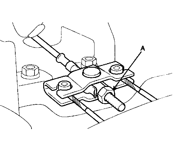 4. Tighten the adjusting nut (A) until the parking brakes are dragged slightly when the rear wheels are turned.