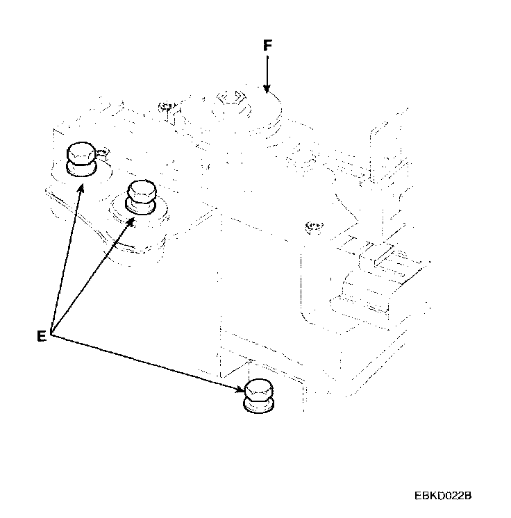 3. Loosen the three mounting bolts(E), and remove the actuator(F) with the bracket.