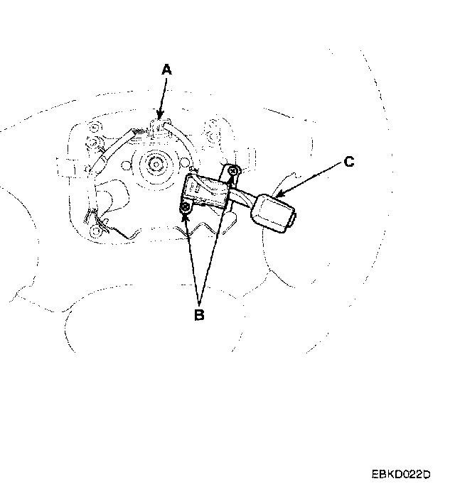 4. Loosen the two mounting screws(B), and remove the cruise remocon switch(C).