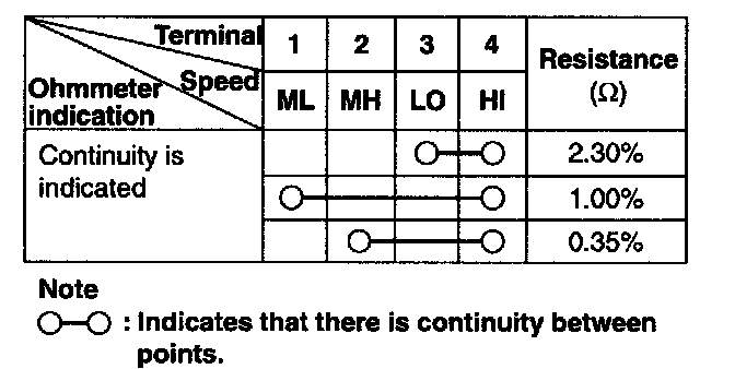 If measured resistance is not within specification, the blower resistor must be replaced. (After removing the resistor)