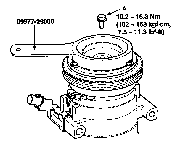 1. Remove the center bolt (A) while holding the pressure plate with a commercially available pressure plate bolt remover; Special tool number 09977-29000.