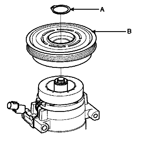 - Be careful not to damage the pulley (B) and compressor during remove/installation.