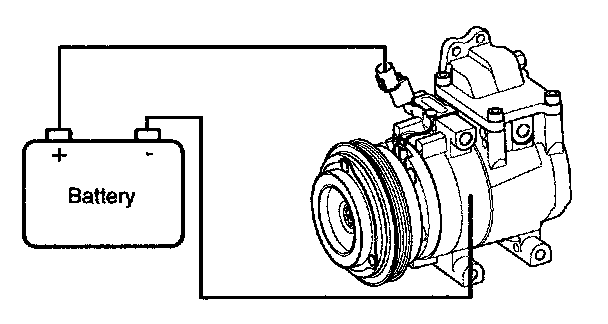 Connect the compressor side terminals to the battery (+) terminal and the ground battery (-) terminal to the compressor body.