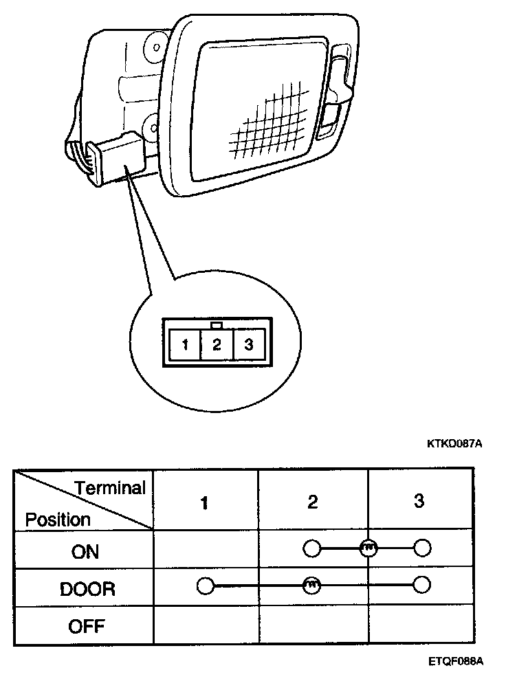 Remove the trunk room lamp assembly then check for continuity between terminals.