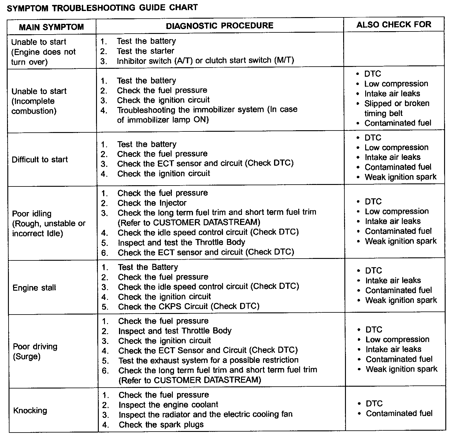 Symptom Troubleshooting Guide Chart Part 1: