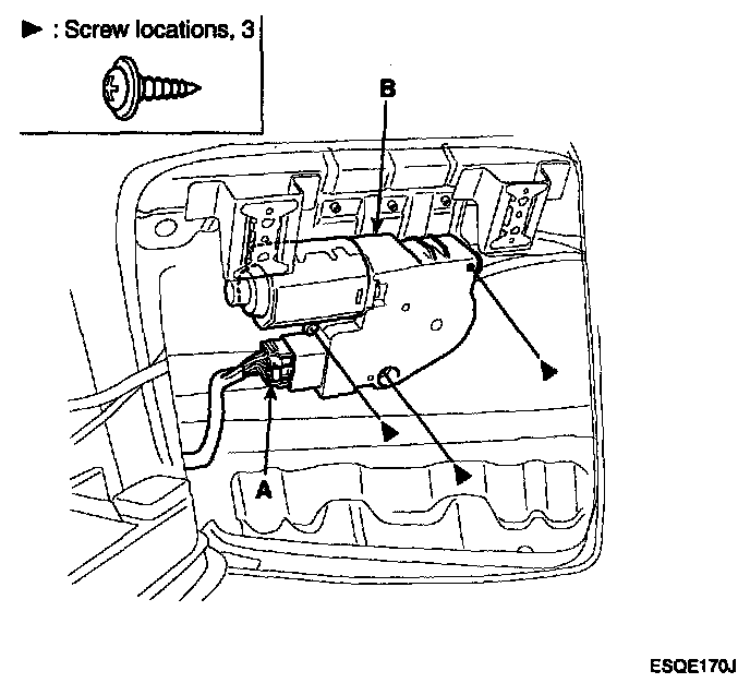 Disconnect the motor connector (A), remove the screws and then remove the motor (B).