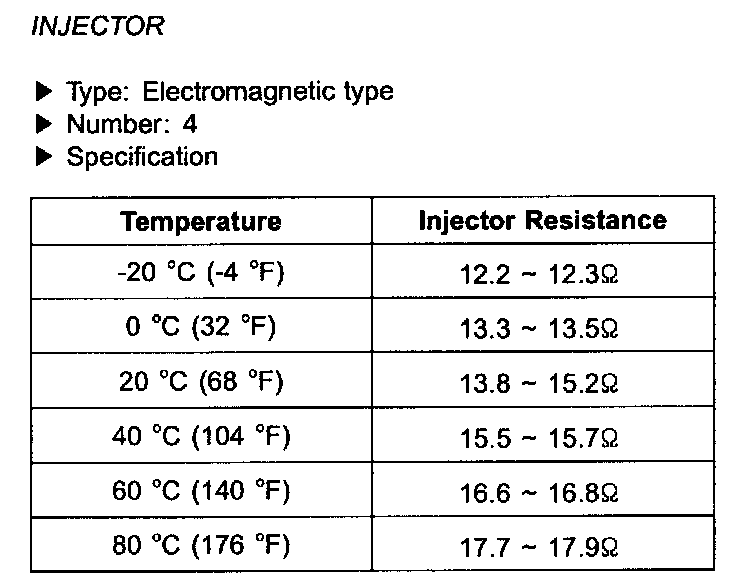 Injector - Specifications: