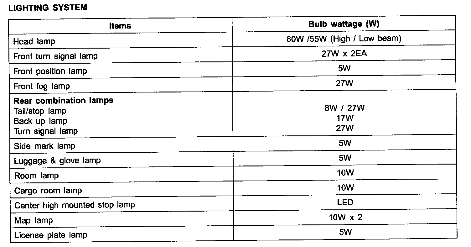 Lighting System - Specifications: