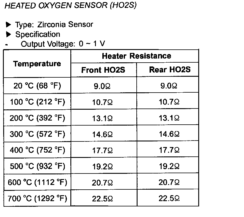 Heated Oxygen Sensor (HO2S) - Specifications:
