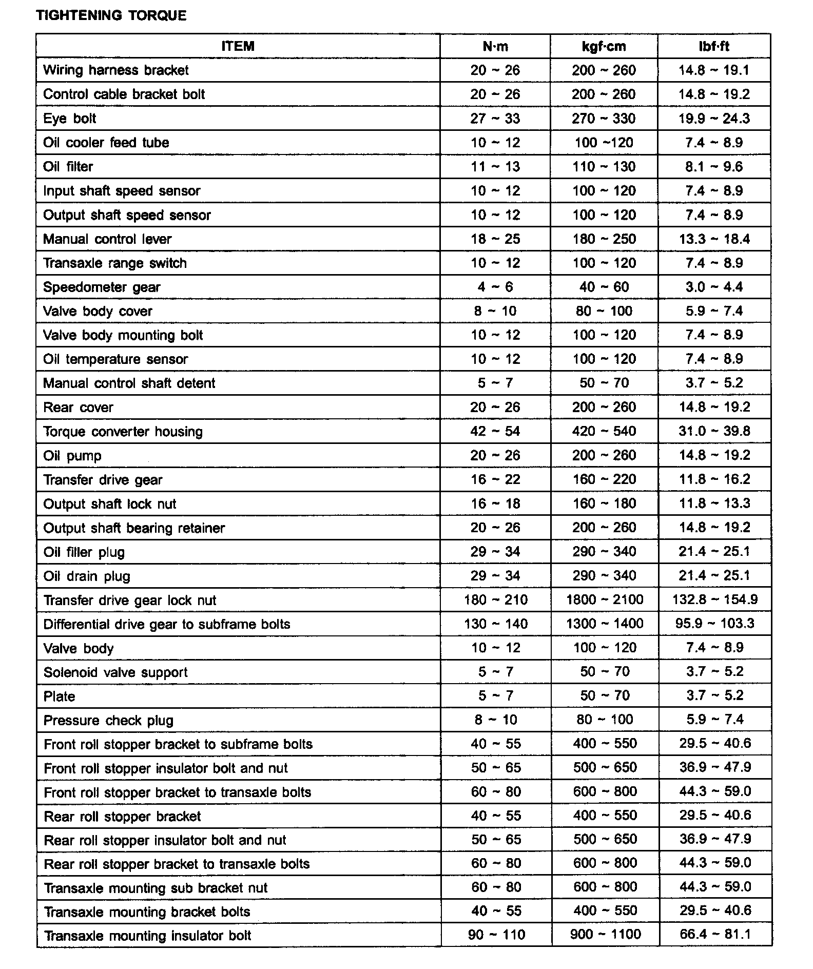 TIGHTENING TORQUE: