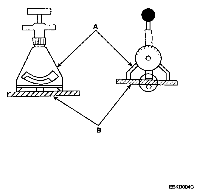 2. Using a belt tension gauge(A), measure the drive belt(B) tension.
