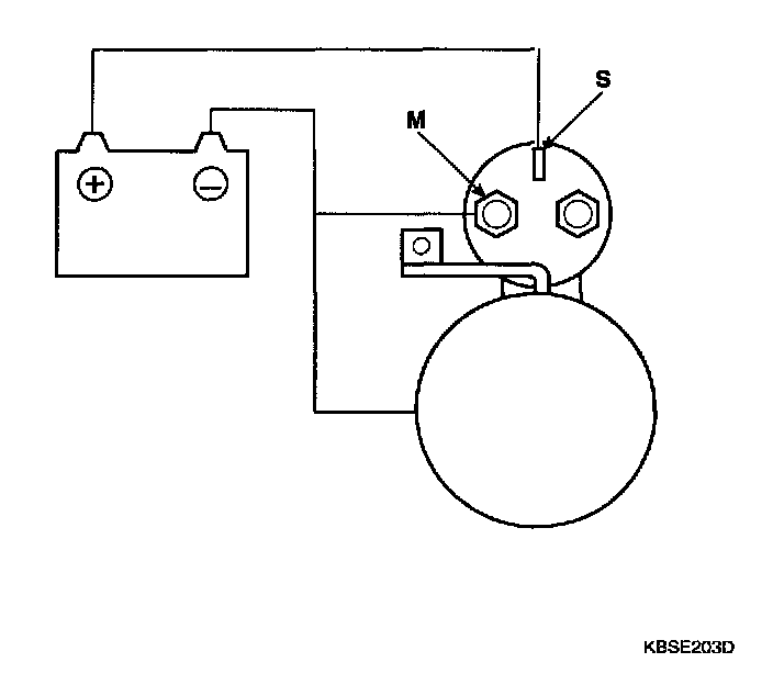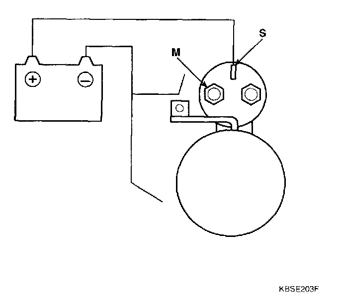 4. Disconnect the battery also from the body. If the pinion retracts immediately, it is working properly. To avoid damaging the starter, do not leave the battery connected for more than 10 seconds.