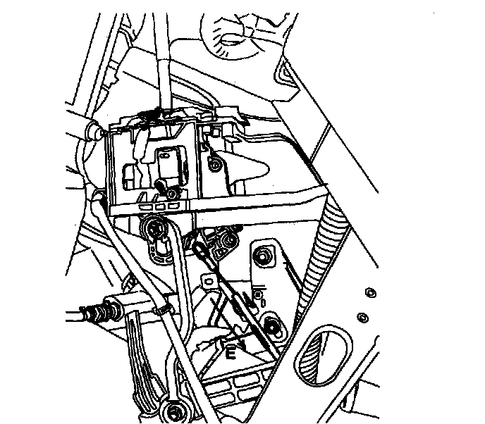 4. Doing the work of 3. slightly pull outer casing of shift lock cable to direction "E" to stretch cable. In this case, shift lock cam must not move.